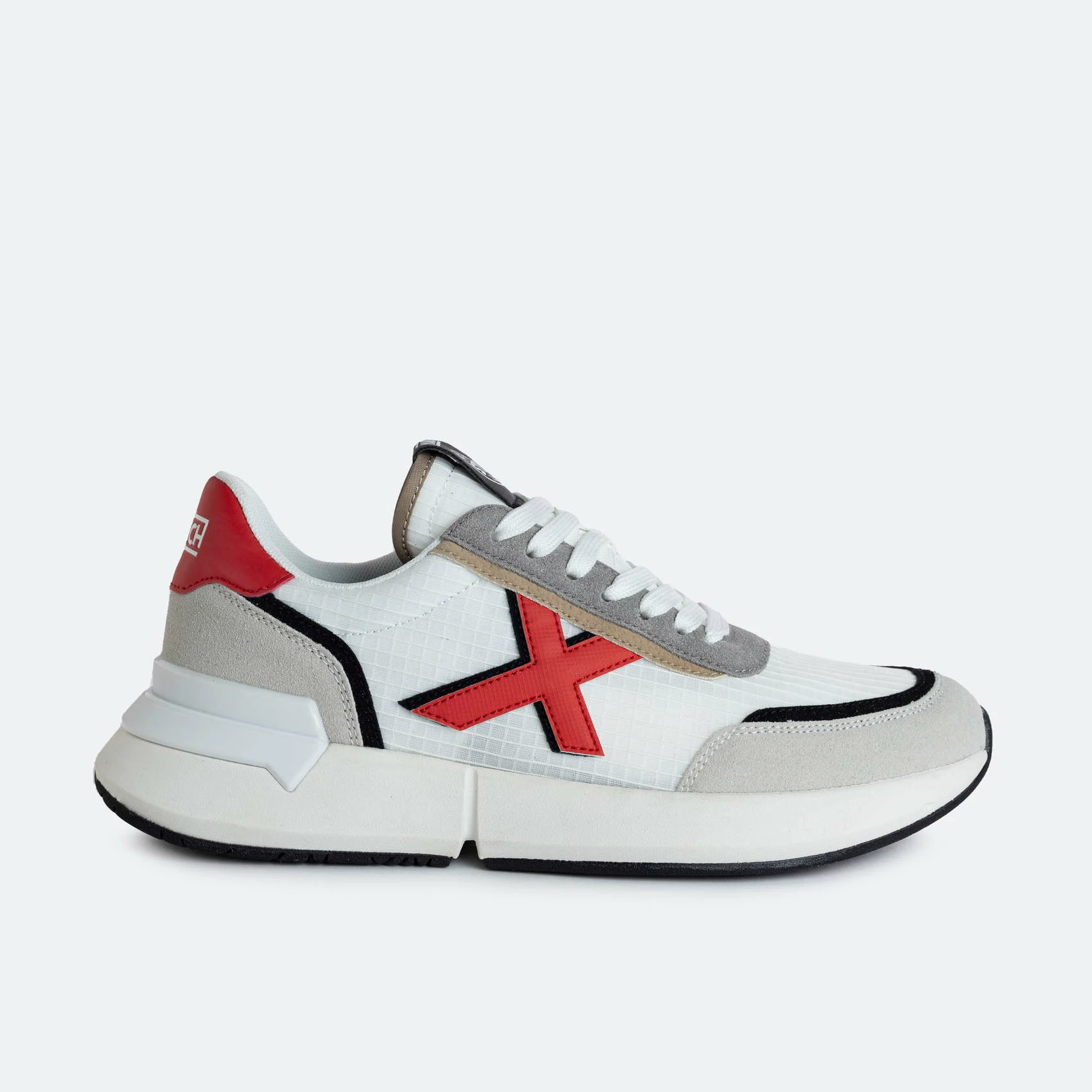Esta zapatilla está elaborada en piel serraje combinada con tejido técnico e incorpora una pieza de TPU en el puente para garantizar una pisada cómoda, natural y firme.